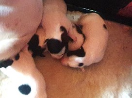 Varattavissa 17.3. syntyneestä pentueesta kaksi valkomustaa narttupentua (oletus sileä karva), luovutus vko 19. Myös tämä yhdistelmä