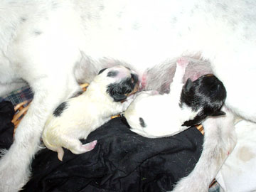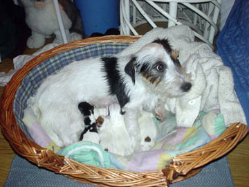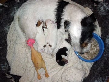 Sähäkkä Seireeni pentujensa kanssa, isä King Bassie´s Lover Boy |